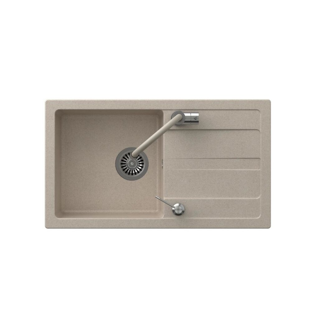 Béžový (pískový) kuchyňský granitový dřez QUADRON READY- MAX + BATERIE A DÁVKOVAČ NA SAPONÁT Dárek ZDARMA: bambusové prkénko 36x20x1,2cm