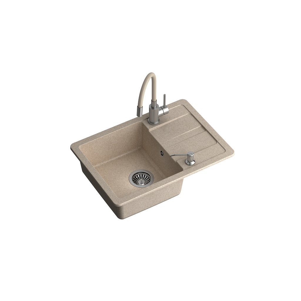 Běžový granitový vestavný dřez s odkapávací plochou, flexi baterií a dávkovačem