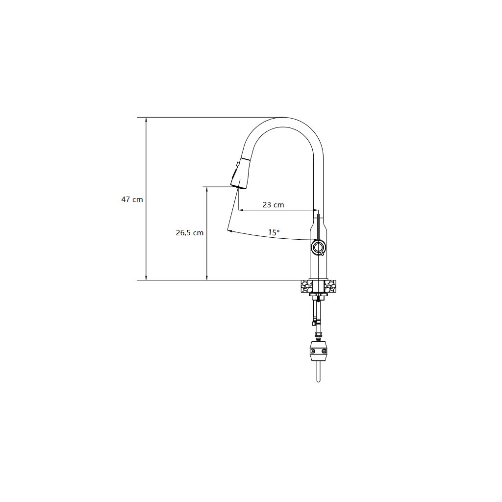 Typ hubice: pohyblivá 360°, vytahovací s přepínačem na sprchu