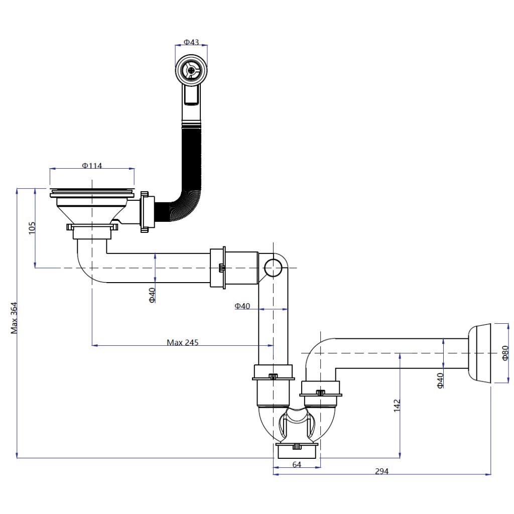 - ruční sifon 3,5'' s kulatým svislým přepadem