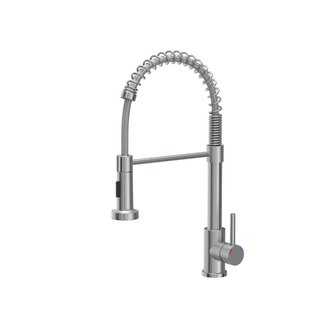 Dřezová baterie SALMA se hodí do moderních kuchyní, hlavním charakteristickým rysem je pružina, ve které je hadice ovinuta, která je velmi praktická a zároveň krásně vypadá. Baterie má také přepínač na sprchu.