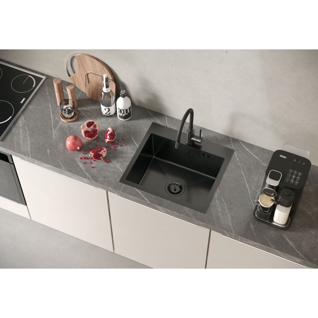 Kuchyňský nerezový dřez QUADRON LUKE 100 černý metalický s ohebnou baterií 50x45x20cm