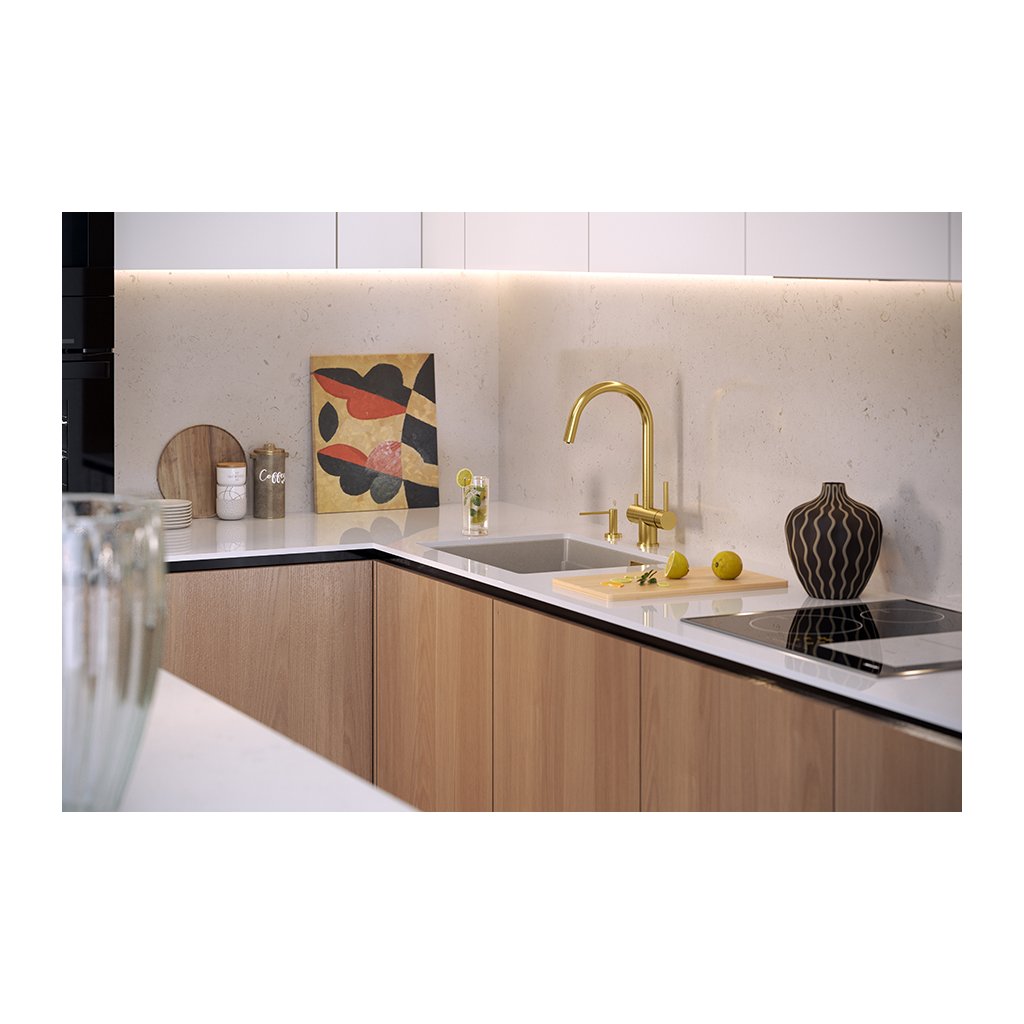 Dřez je vyroben z granitových částic a z vysoce kvalitní pryskyřice.