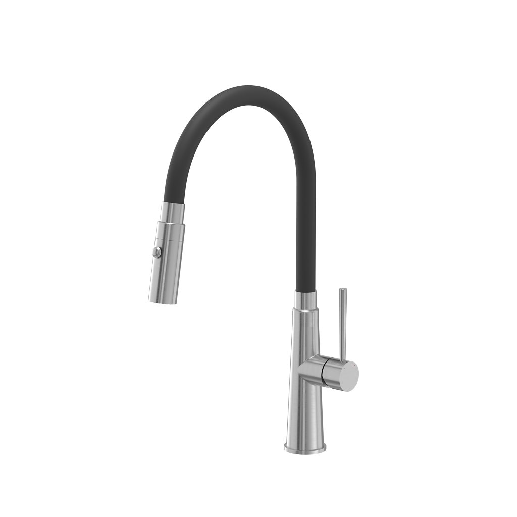 Černá/nerez ohebná dřezová baterie QUADRON GINA se sprchou