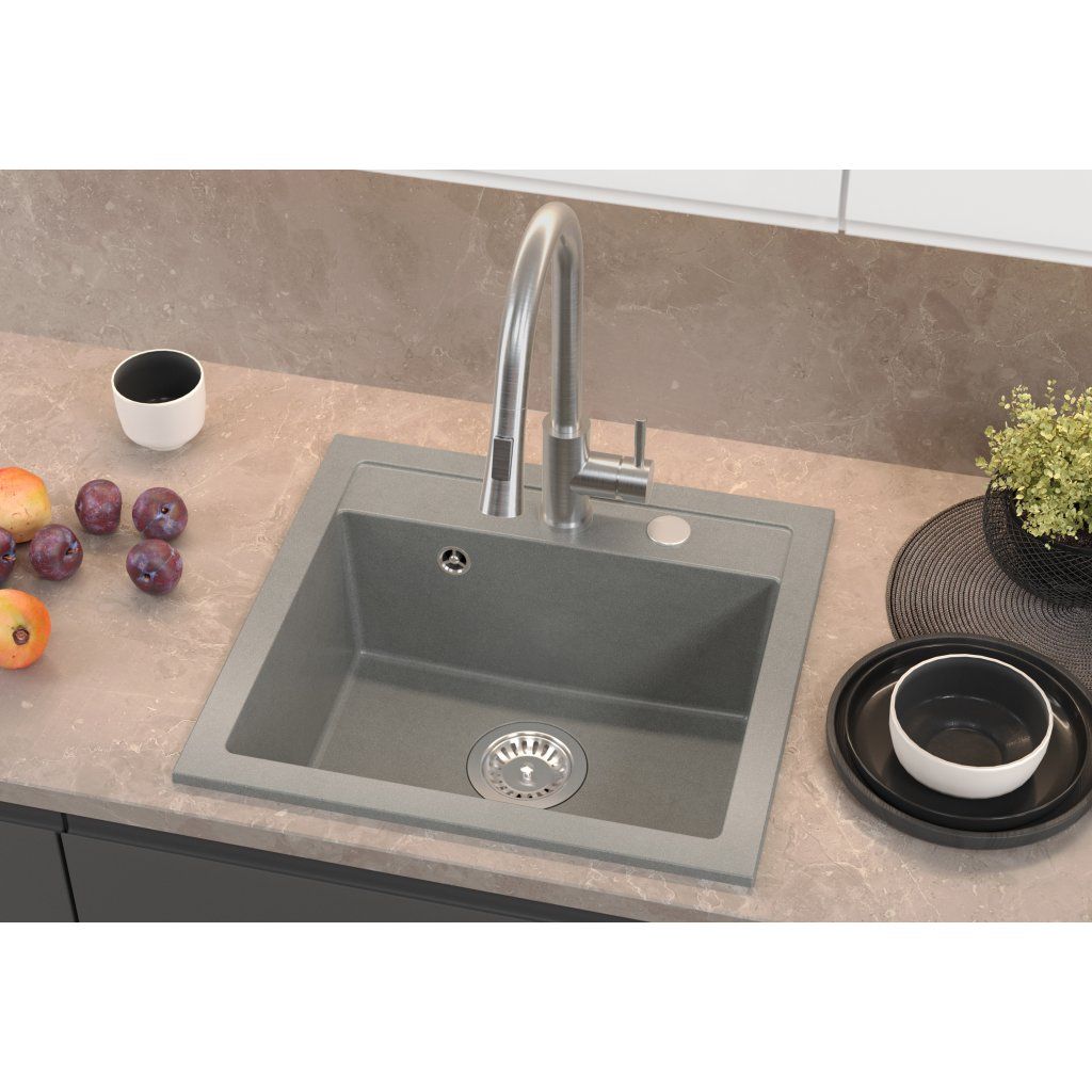 Šedý kuchyňský granitový dřez QUADRON JOHNNY 110 bez baterie