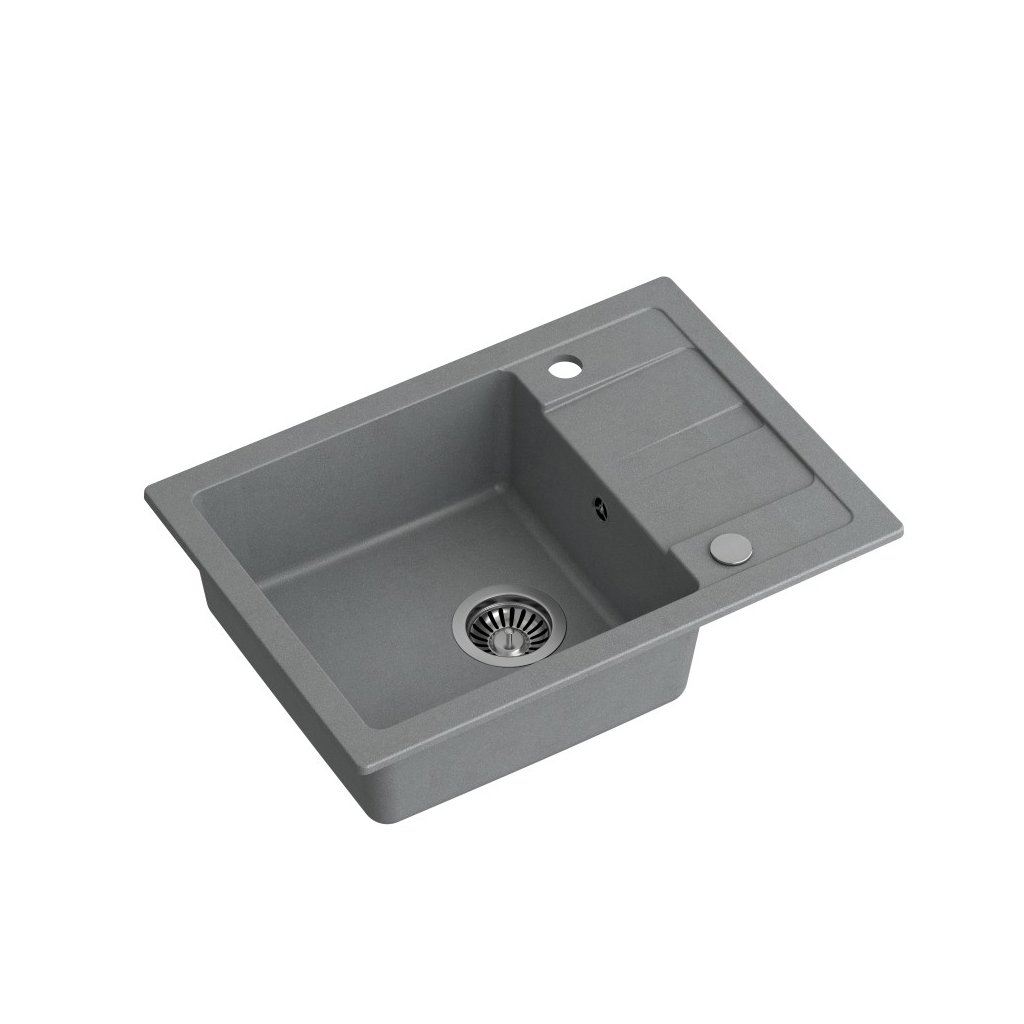 Šedý granitový vestavný dřez s odkapávací plochou